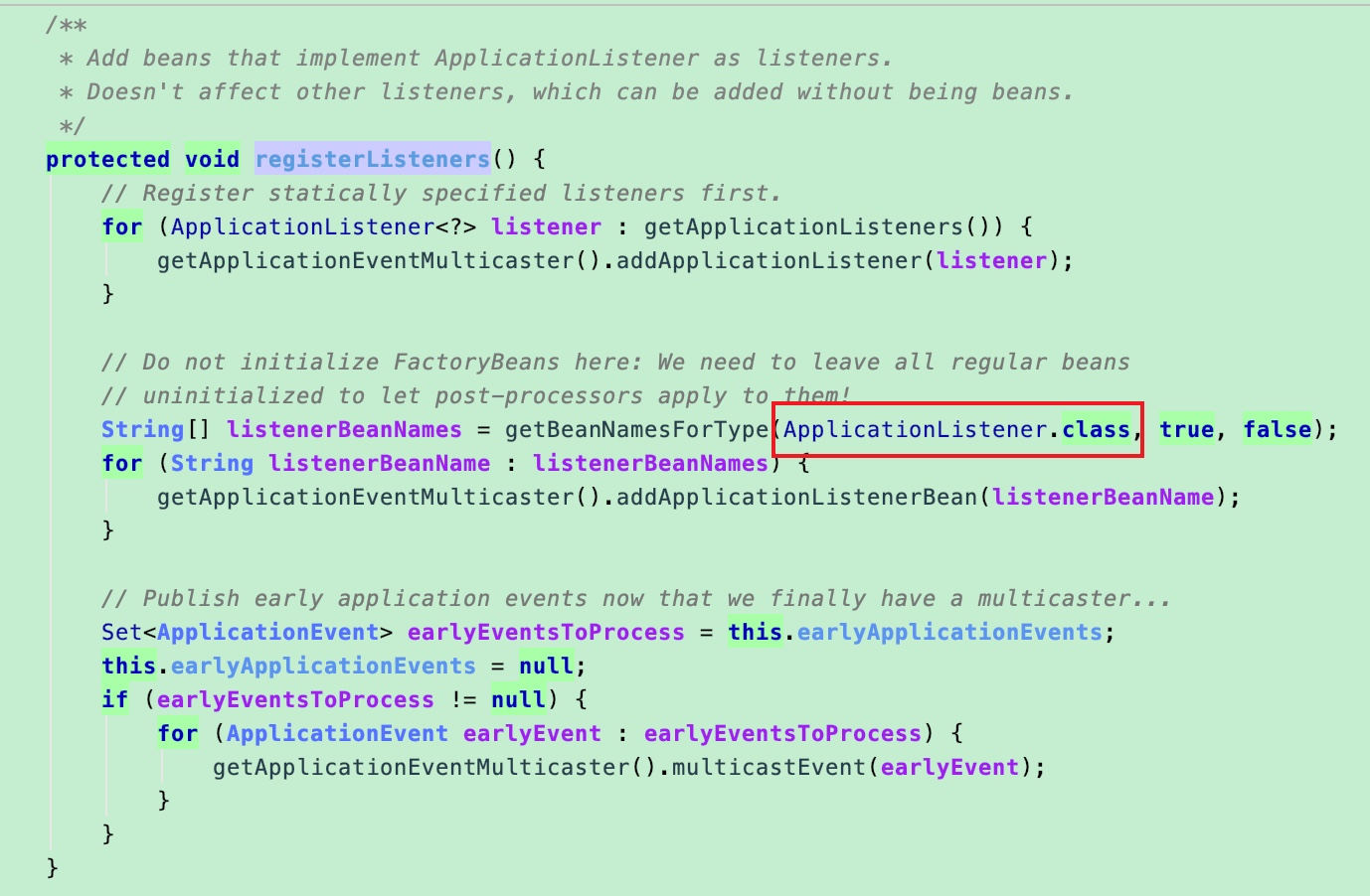 org.springframework.context.support.AbstractApplicationContext#registerListeners里面