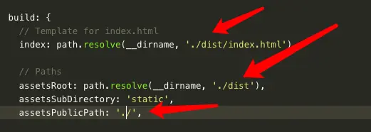 然后我们对项目进行打包,在打包之前,修改config目录下的index.js,将build中的assetsPublicPath属性改成相对路径:assetsPublicPath: './'