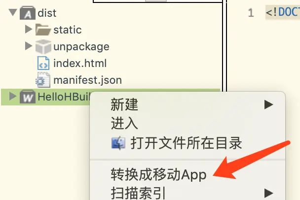 vue.js将会包项目直接打包在dist文件夹中,这时,下载hbuilder安装包www.dcloud.io/hbuilderx.h…,要下载app开发版,将dist直接拖动到hbuilder开发界面中,然后右键转换为移动app