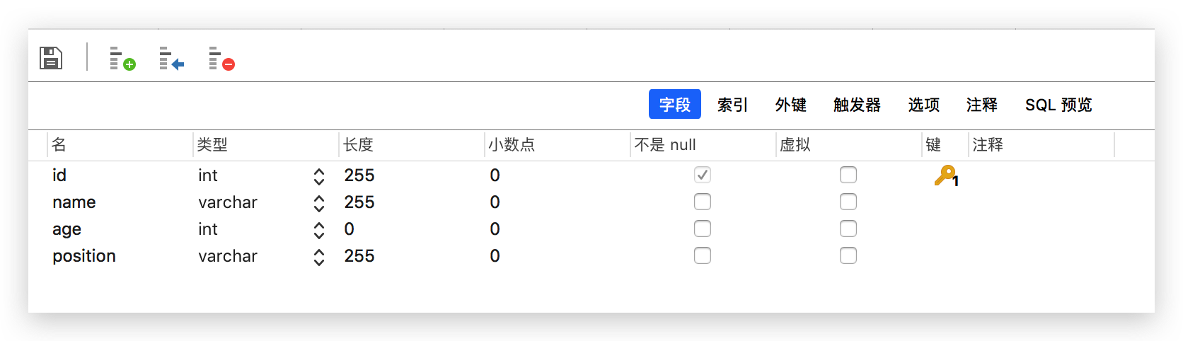 id, name, age, position