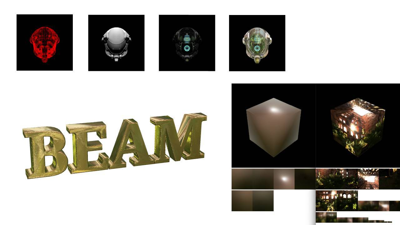 我们前端同学们所擅长编写的 JavaScript,只是在 CPU 里执行的单线程代码而已。别忘了我们还有 WebGL 这个虽然非常繁冗,但能让我们释放 GPU 潜力的武器。这个领域常常被认为是游戏开发者所专属的。而大家对于应用 Web 上的 3D 能力,首先想到的可能也都是套用 Three 等充分封装后的成熟开源渲染引擎。因此,在这个领域就没有必要重新发明轮子了吗?恰恰相反,我发现这是一片巨大的蓝海,它在 Web 设计领域的应用几乎还是白纸一张,存在着非常大的定制、优化可能性和应用前景。限于篇幅和本文的主题,这里不再详细展开,只展示一下我们自研的渲染引擎在投入开发一个月之内所得到的一些渲染效果就足够了: