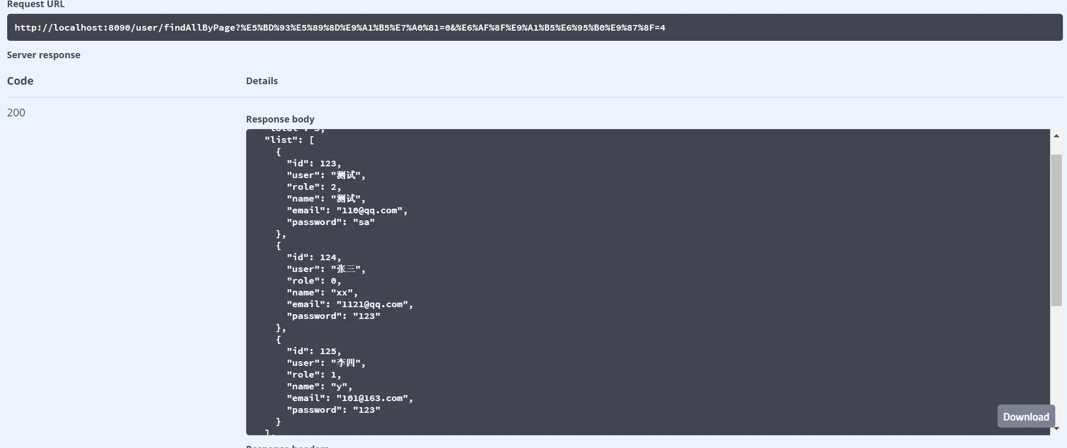 测试分页查询接口