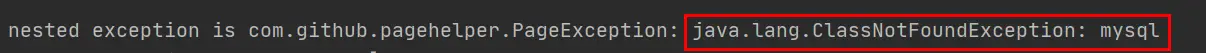 org.springframework.beans.factory.BeanCreationException: Error creating bean with name 'com.github.pagehelper.autoconfigure.PageHelperAutoConfiguration': Invocation of init method failed; nested exception is com.github.pagehelper.PageException: java.lang.ClassNotFoundException: mysql