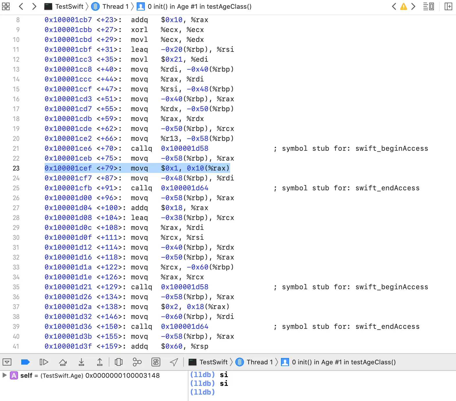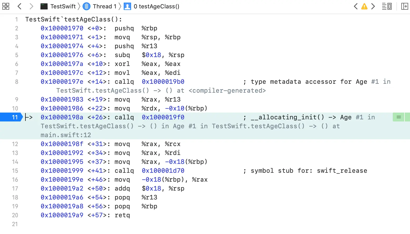 let a1 = Age() //在此处打断点