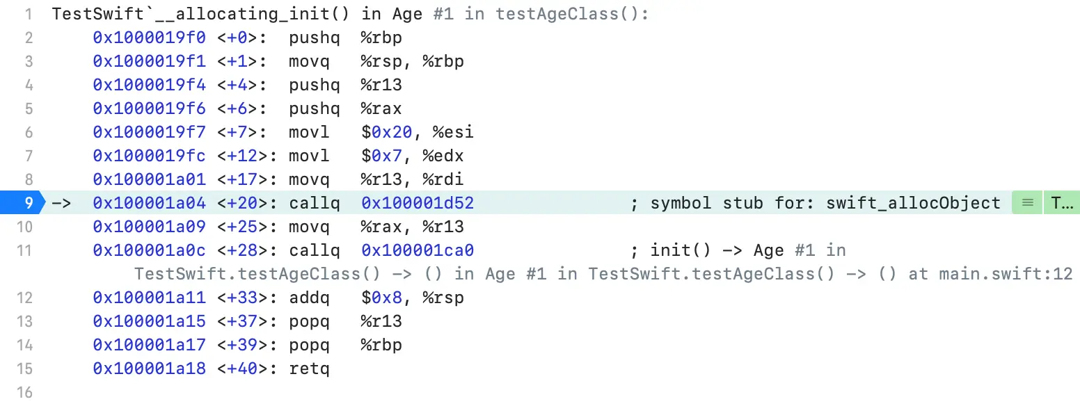 下面我们再通过汇编看看下面代码,初始化器是怎么实现的