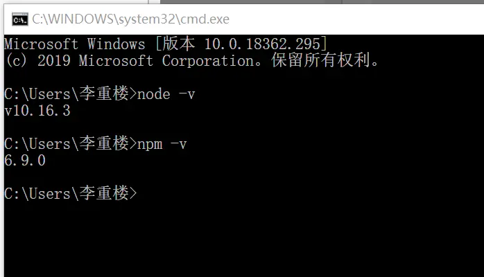 npm -v如果是按照如上安装顺序的话,会出现如下结果,表明安装成功。