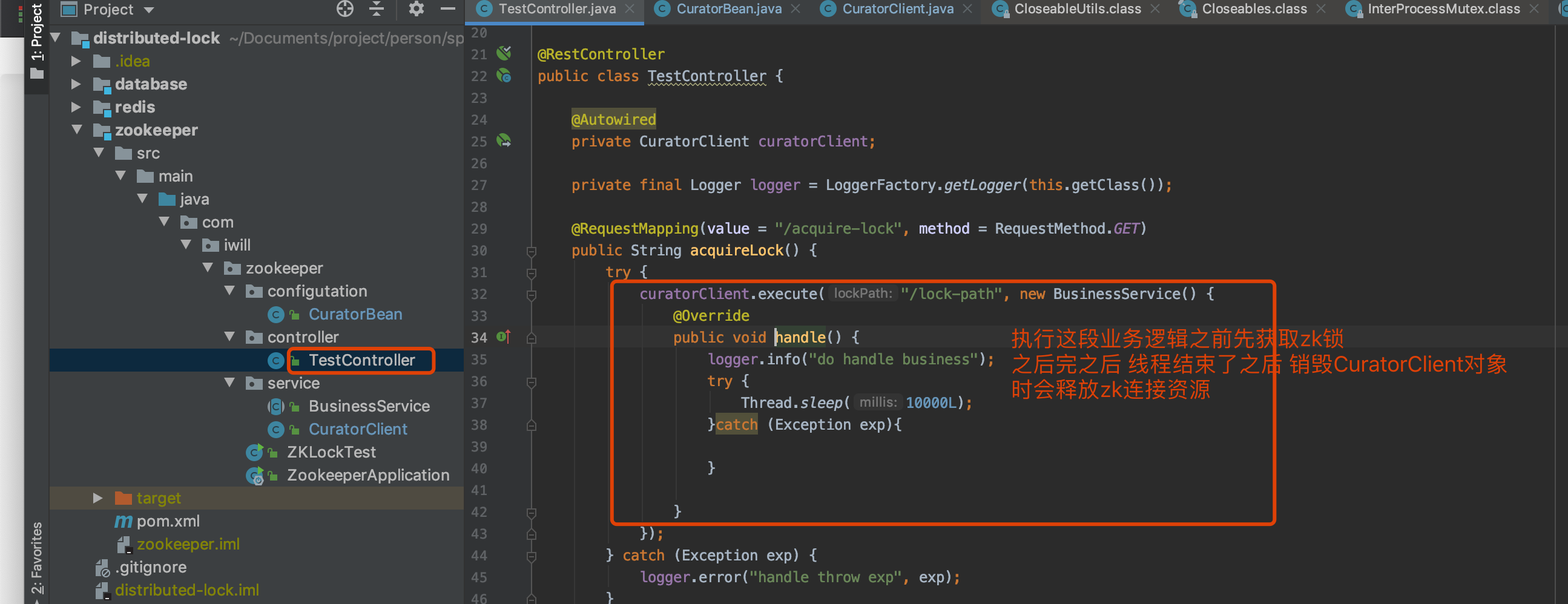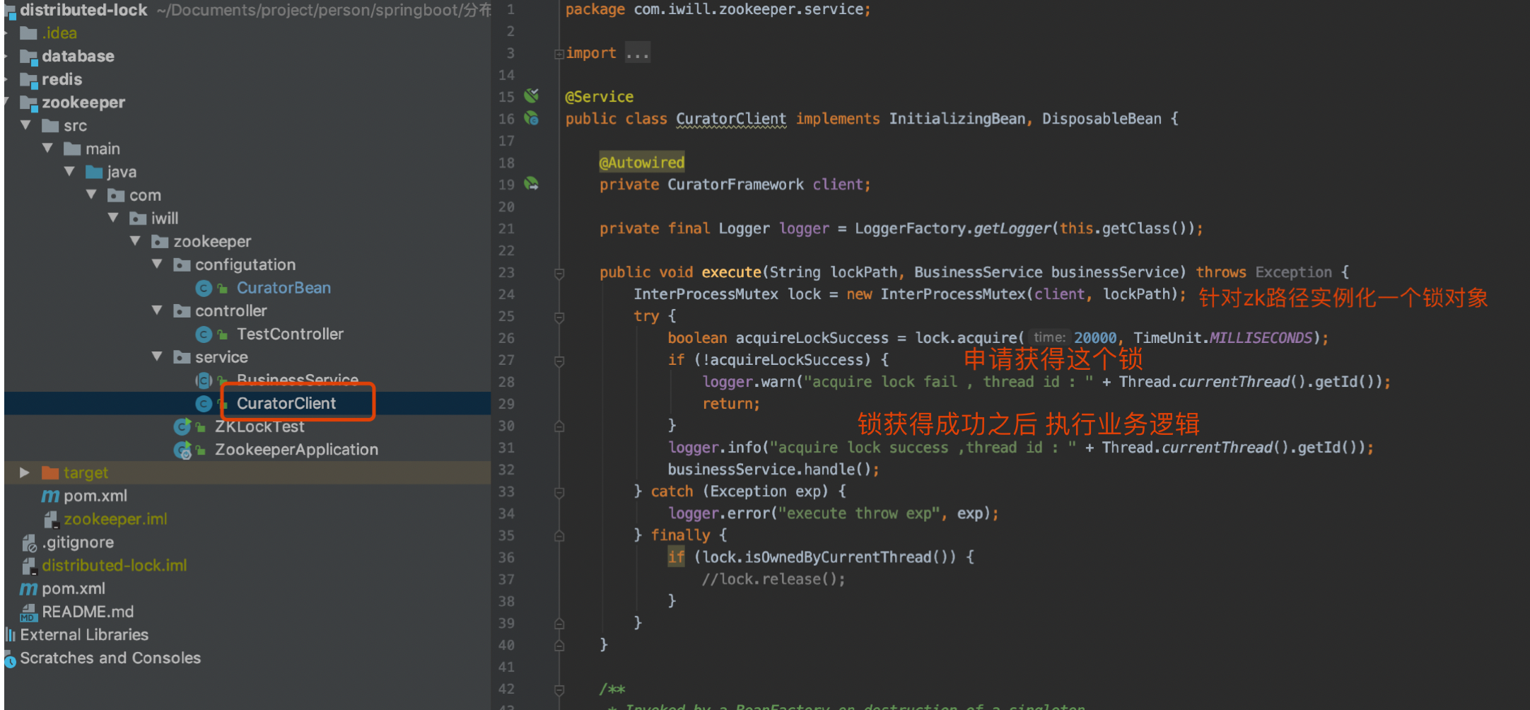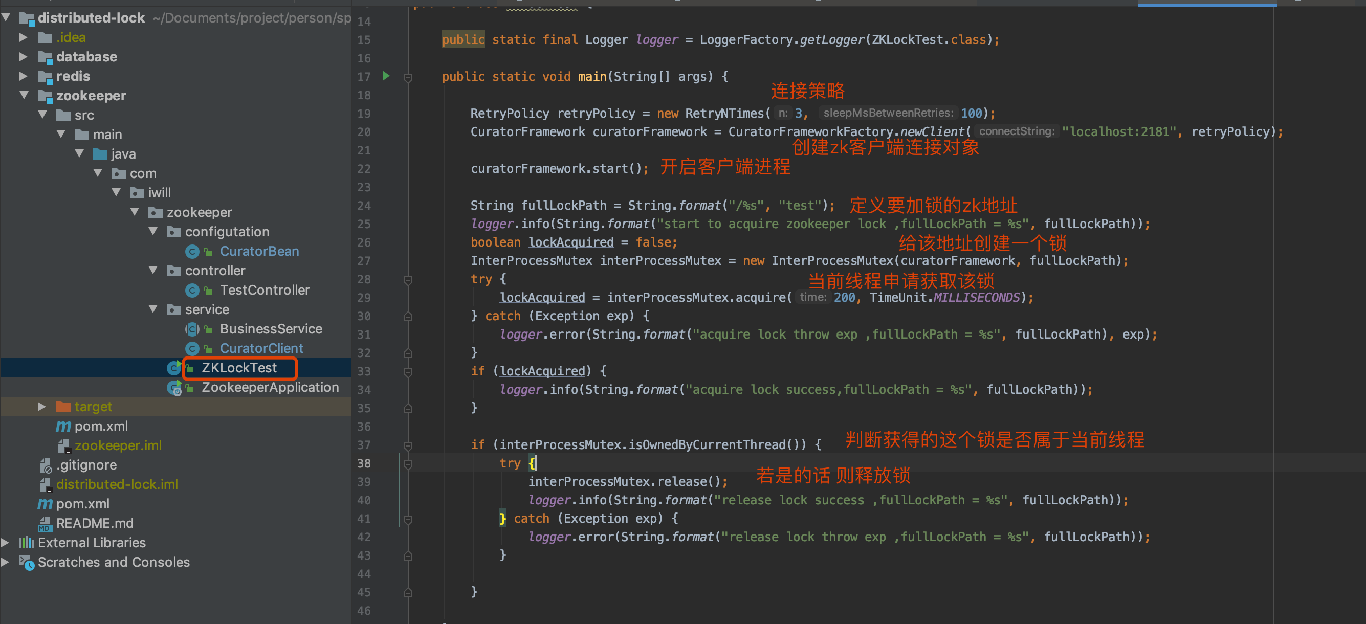 先说下这个test方法 描述了 获取zk锁的完整流程