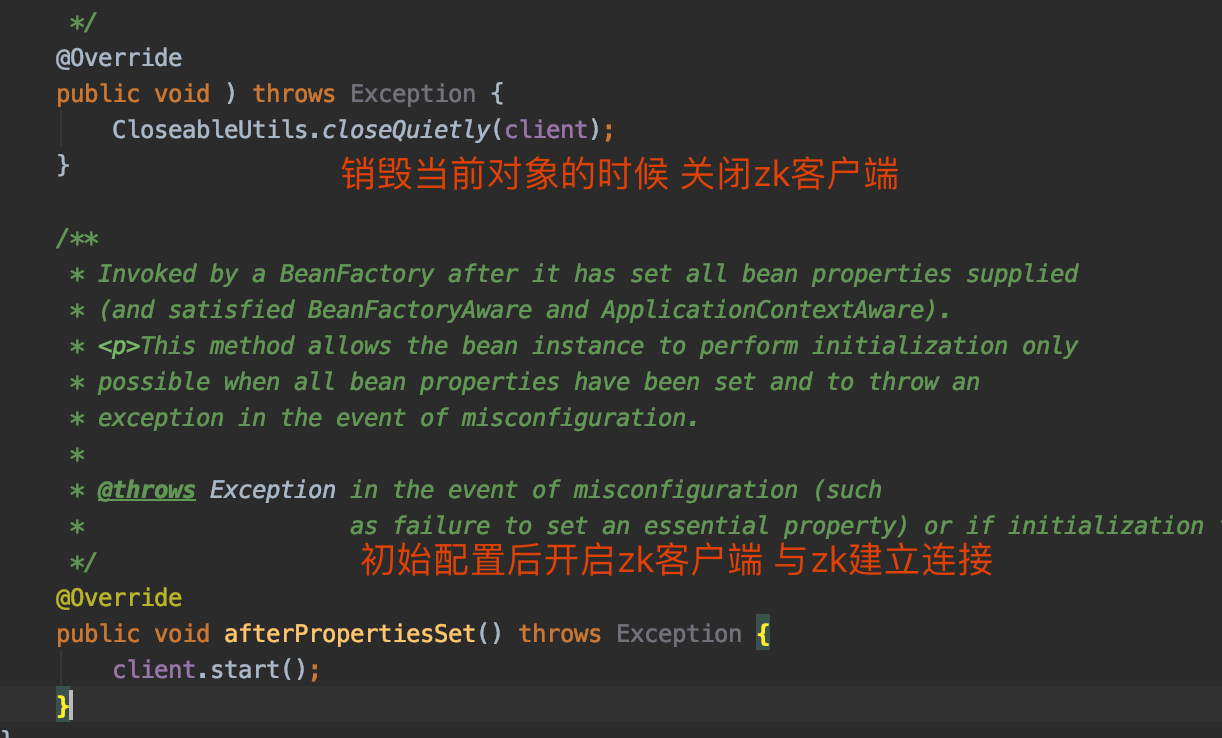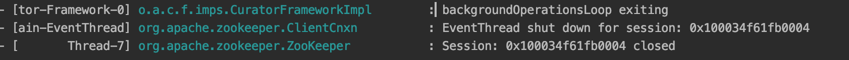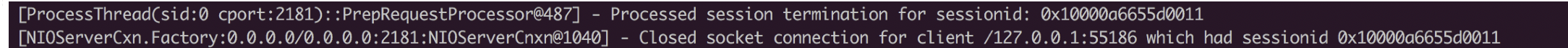 应用在启动的时候(client.start方法执行的时候)zookeeper客户端就会和zookeeper服务器时间建立会话,系统关闭时,客户端与zookeeper服务器的会话就关闭了