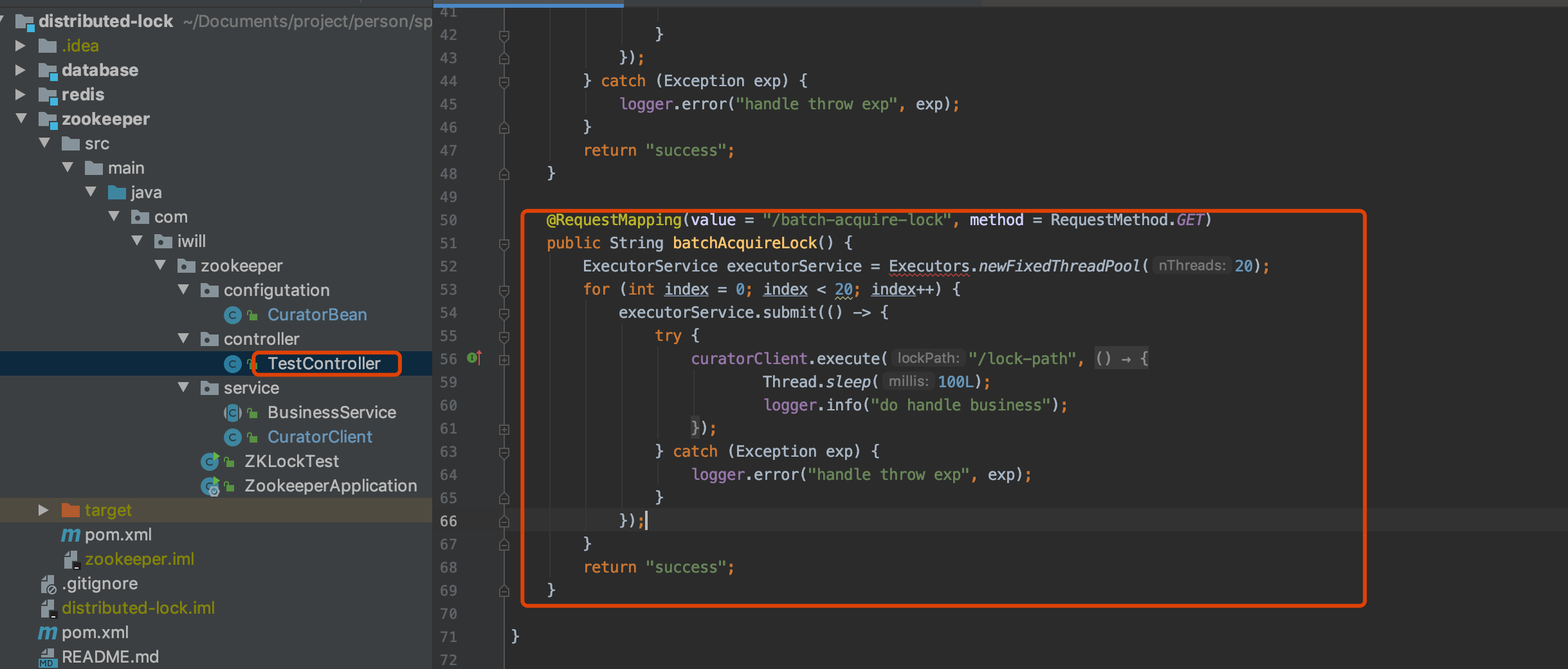 curl http://127.0.0.1:8080/batch-acquire-lock查看zk锁情况