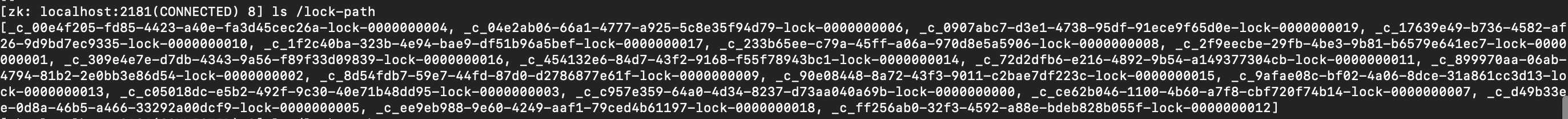 由此也会看出一个缺点临时会话顺序节点会被删除,但是它们的父节点/lock-path不会被删除。因此,高并发的业务场景下使用zookeeper分布式锁时,会留下很多的空节点