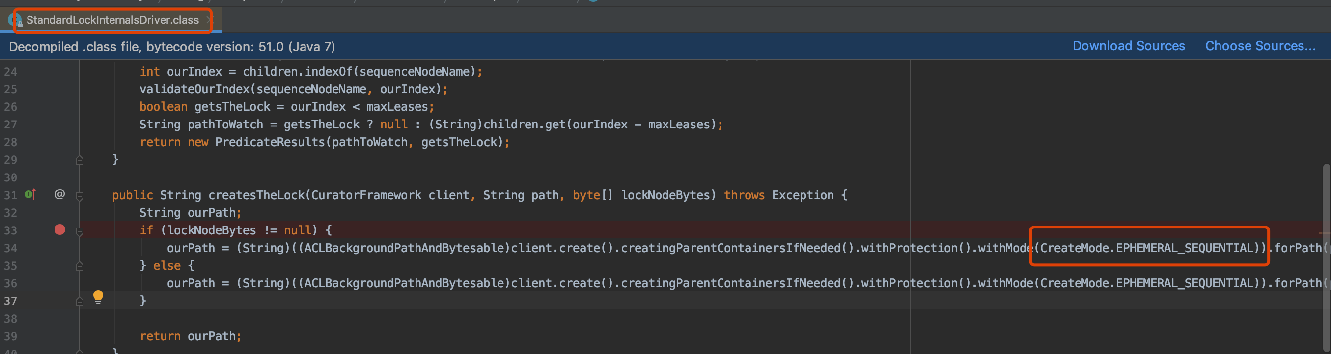 即该节点会在客户端链接断开时被删除,还有,我们调用org.apache.curator.framework.recipes.locks.InterProcessMutex#release时也会删除该节点