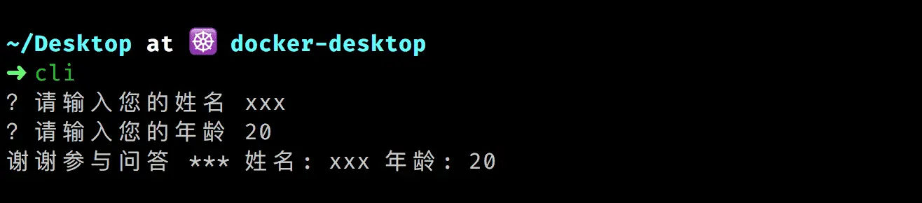 在某些情况下,CLI 工具可能需要使用交互式输入,如输入密码时,这种情况不适合直接通过参数输入。简单的输入时,可以直接 Node 的 readline 模块: