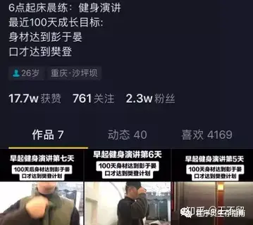 看下面这个抖音里面的健身达人。他就是每天早起健身练口才。重复的事情坚持一定时间后,大家会其产生一种敬佩。逐渐个人IP就打造起来了。