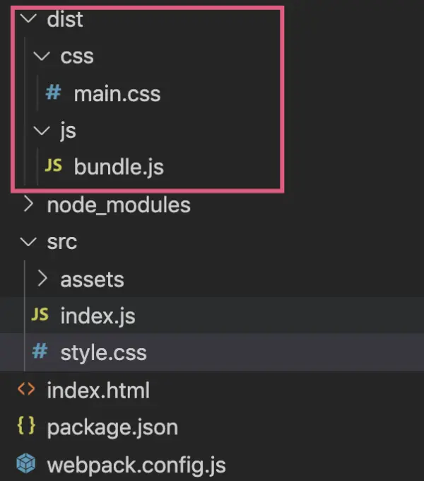 scr/index.js 文件,打包后输出到 dist 文件夹下,JS 文件最后打包到 dist/js/bundle.js 中