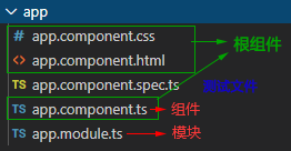 app.component.ts:这个文件表示组件 组件是Angular应用的基本构建模块,可以理解为一段带有业务逻辑和数据的Html