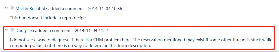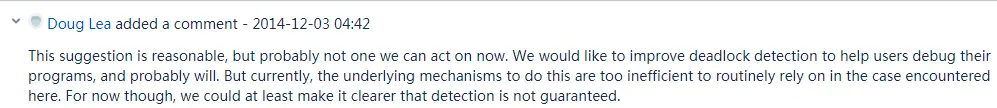 可以看到,2014 年 11 月 04 日 Martin 提出这个问题后, Doug Lea 在不到一个小时内就进行了回复,我给大家翻译一下,老爷子回复的啥: