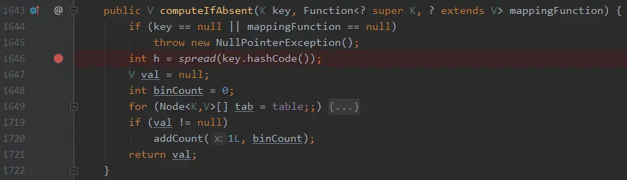 该方法的含义是:当前 Map 中 key 对应的值不存在时,会调用 mappingFunction 函数,并且将该函数的执行结果(不为 null)作为该 key 的 value 返回。