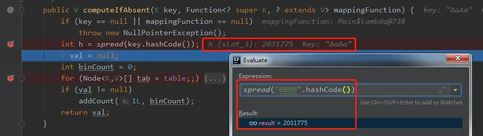 首先,我们看一下 “AaAa” 和 “BBBB” 经过 spread 计算(右移 16 位高效计算)后的 h 值是什么: