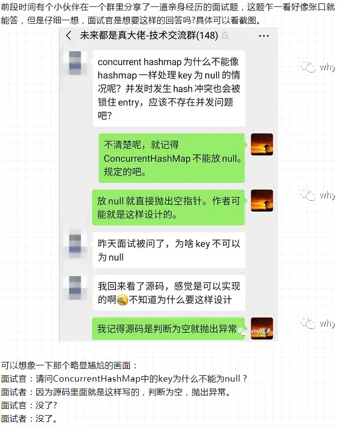 说到 ConcurrentHashMap get 方法返回 null,我就想起了之前讨论的一个面试题了: