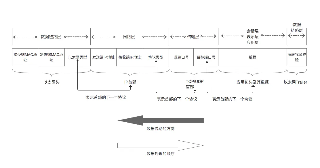 IP包对于以太驱动来说就是数据,驱动给这些数据加上以太网首部并进行发送。以太网首部中包含接收端MAC地址、发送端MAC地址以及标志以太网类型的以太网数据的协议。