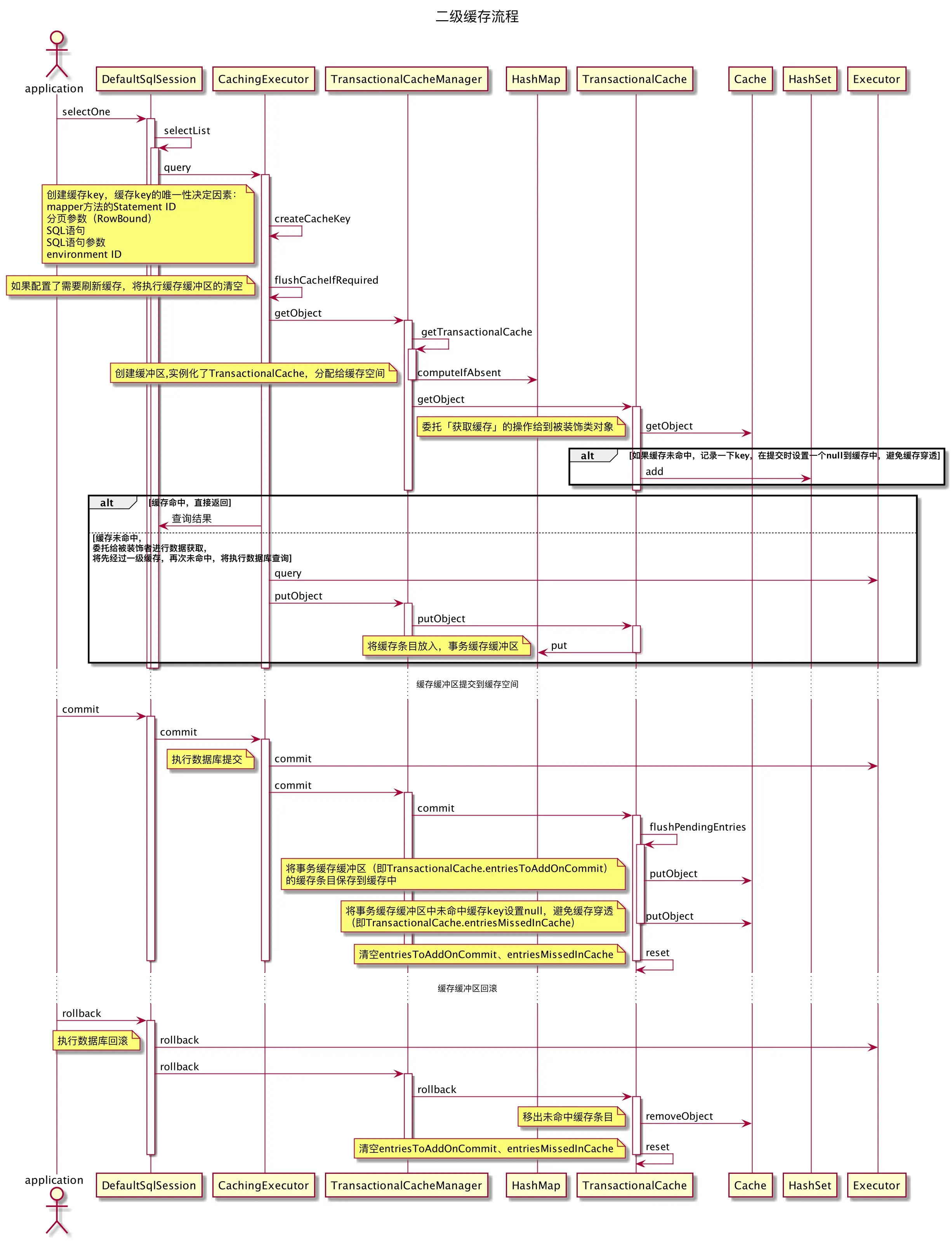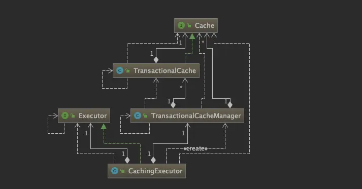 CachingExecutor 通过 TransactionalCacheManager 来管理缓存,而 TransactionalCacheManager 通过操作 TransactionalCache 的接口来维护缓存。