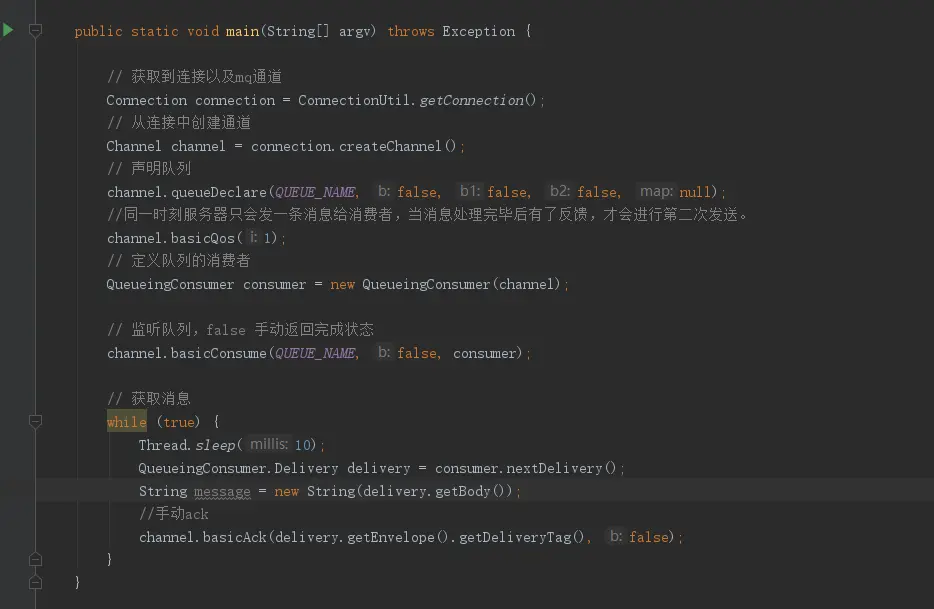 解决办法:其实主要还是利用mq的ack机制,关闭mq的自动ack,程序处理完自己ack,当你没有ack的时候,消息一直处于不可以状态,当当前的consumer 发生异常断开连接 broker 才会将该条消息发送给其他的consumer。