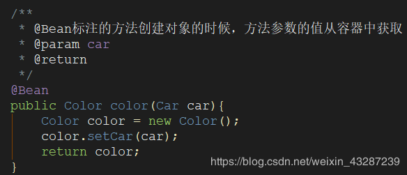 方法 :@Bean+方法参数;参数从容器中获取;默认不写@Autowired效果是一样的;都能自动装配