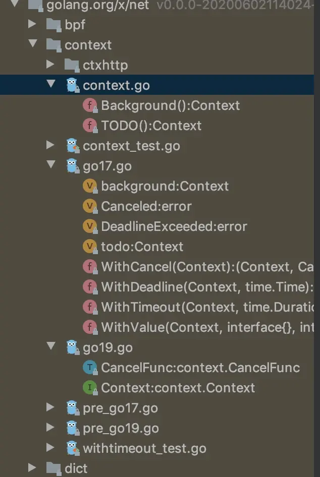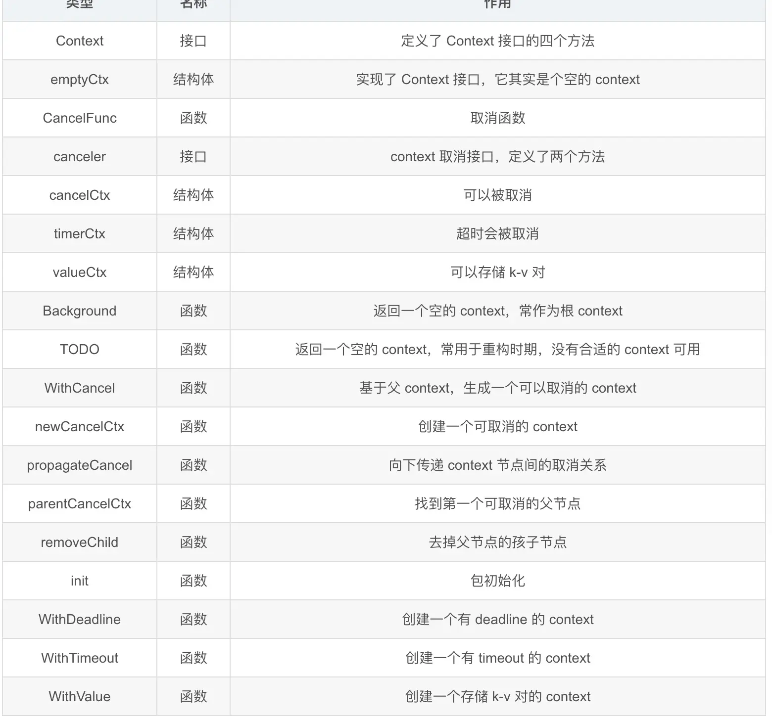 Value(key interface{}) interface{}}Context时是个interface。定义4个func。都是幂等。也就是说多次调用一个method。得到结果是一样的。