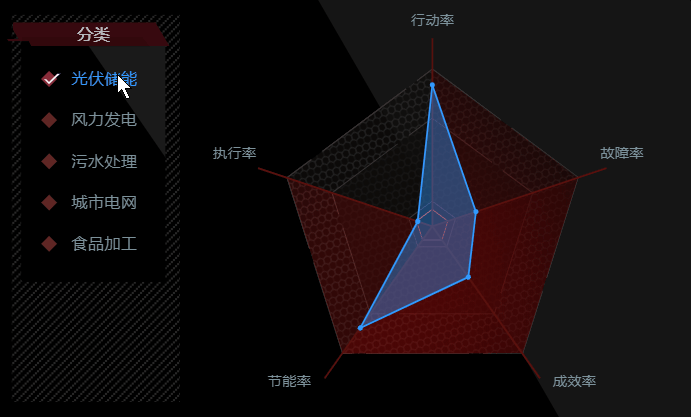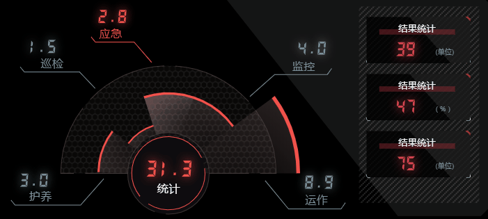 还有个面板中是扇形图的轮播,也是通过提前绑定好属性,然后起个定时器来切换它的状态,风格一致,相同的动画效果我们一起来看一下: