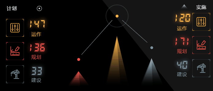 g3d.getView().style.zIndex = 200首先来看一下半圆菜单栏部分,我们先给图标中元素绑定好属性,明确要驱动的部分,即小扇形的横纵缩放比、颜色透明度,提示框的裁切比等,然后通过改变状态来区分不同的选项: