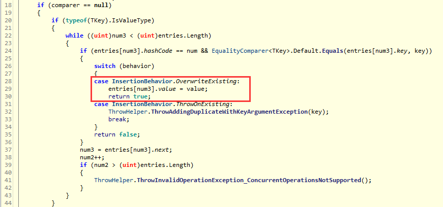 IL_0053: callvirt instance void class [System.Collections]System.Collections.Generic.Dictionary`2<int32, int32>::set_Item(!0, !1)