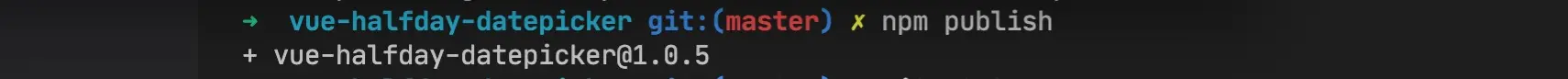 回到我们vue插件的仓库根目录下,打开命令行,输入命令 npm login ,按照提示输入你的用户名和密码,再执行 npm publish 进行发布。发布成功,命令里会显示 npm的包名和版本号。