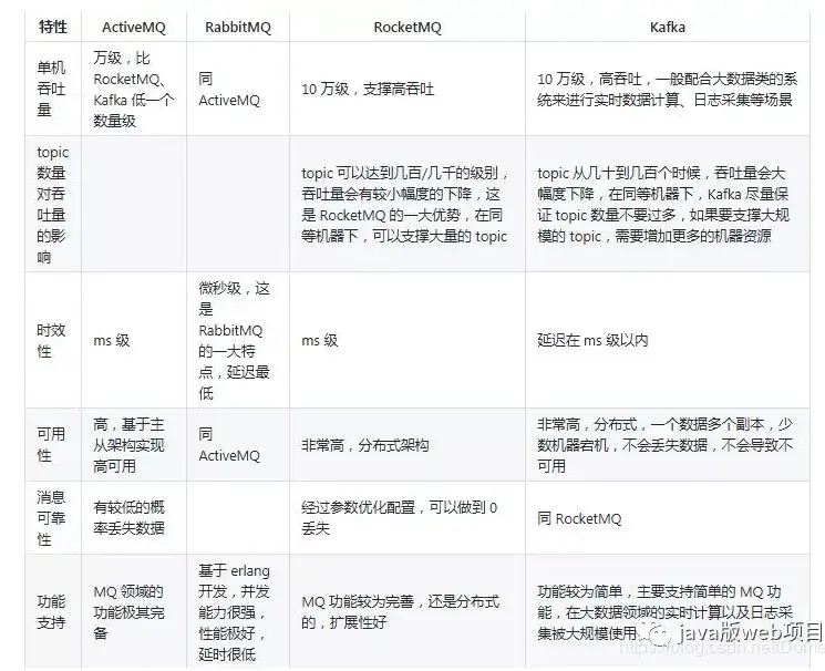 Kafka、ActiveMQ、RabbitMQ、RocketMQ 优缺点