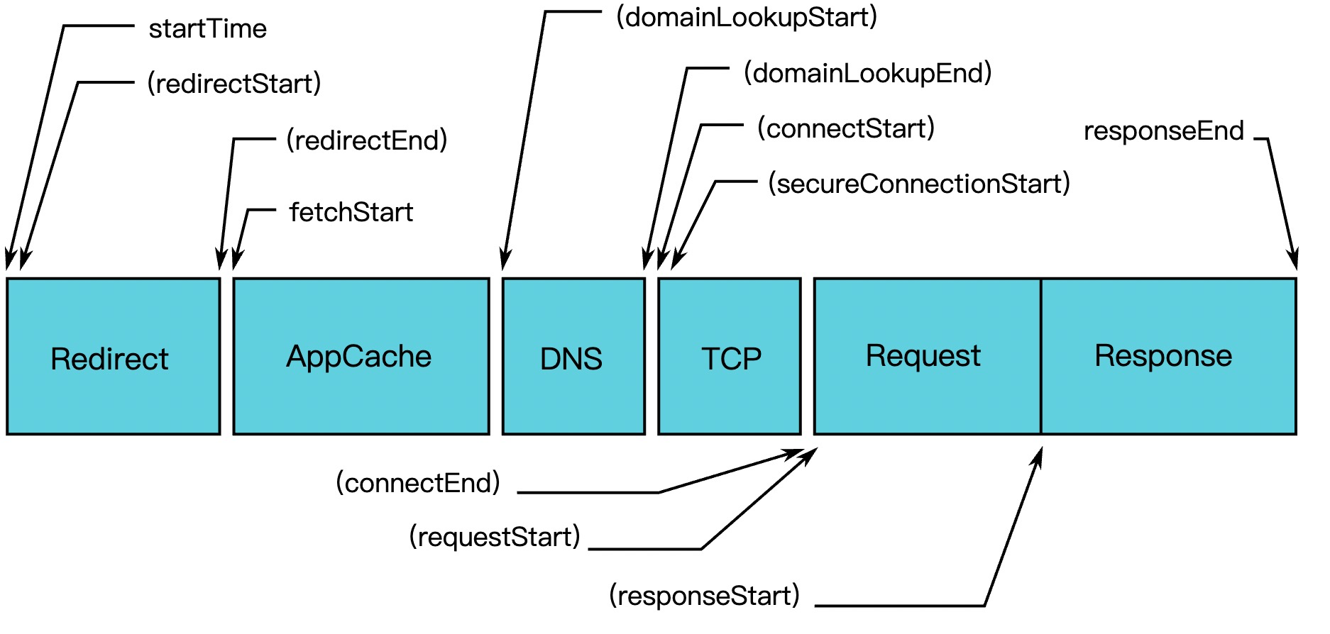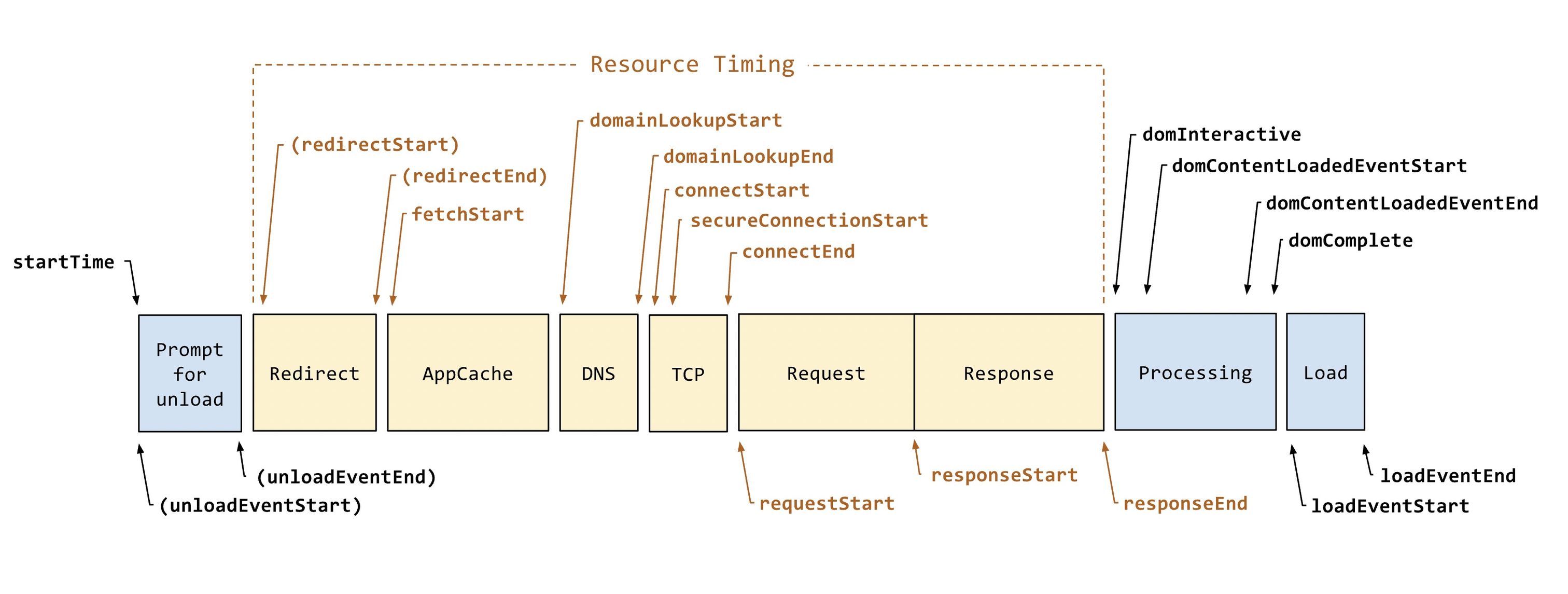 两种类型的因素都会影响请求和响应速度。导航和资源计时都使用以下方式衡量请求和响应: