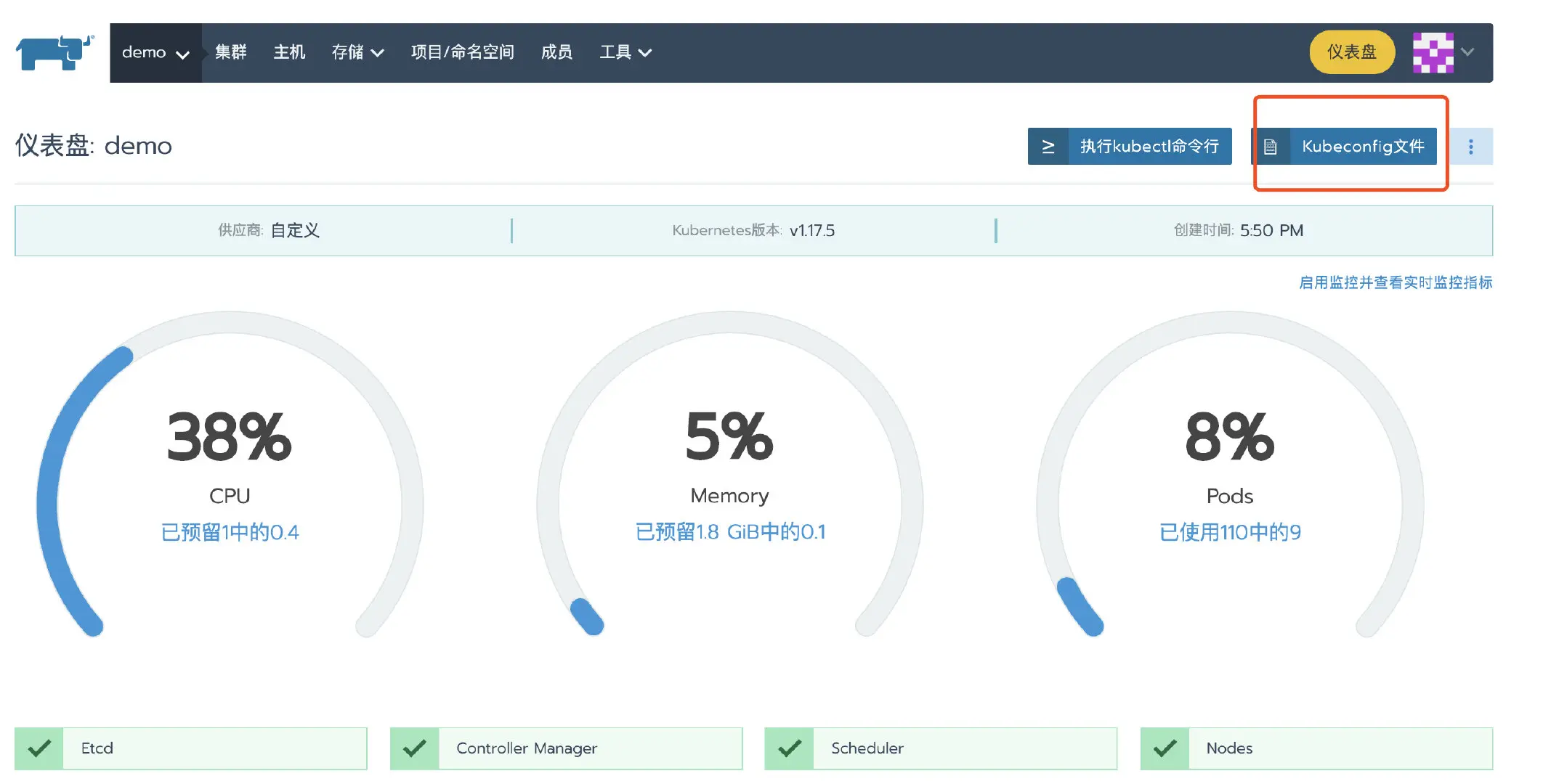 Rancher v2.2.2以及之后的版本,可以直接从UI上下载kubeconfig文件。