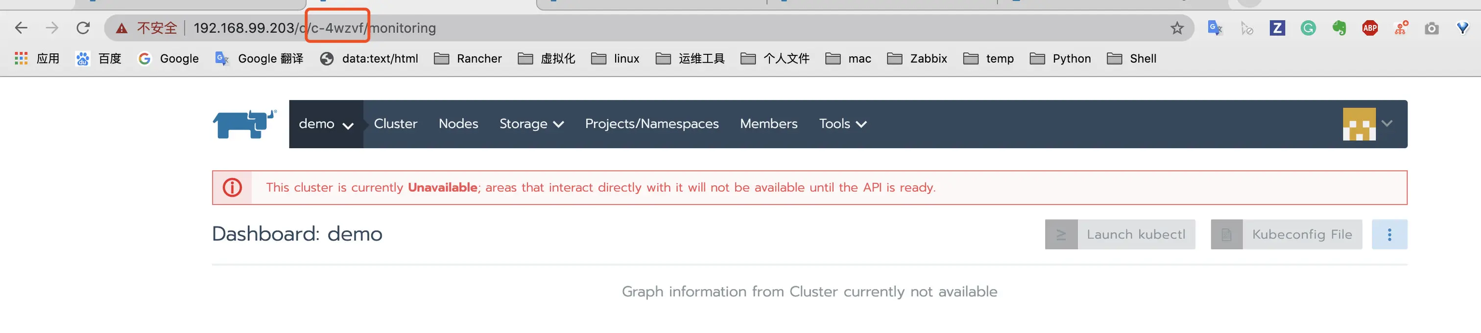 通过浏览器地址栏查询集群ID, c/后面以c开头的字段即为集群 ID,本例的集群ID为c-4wzvf;