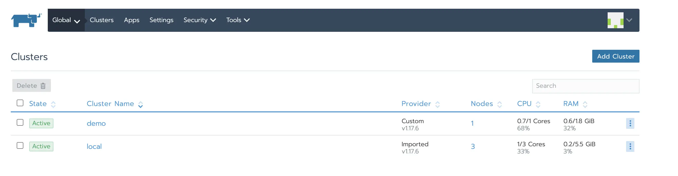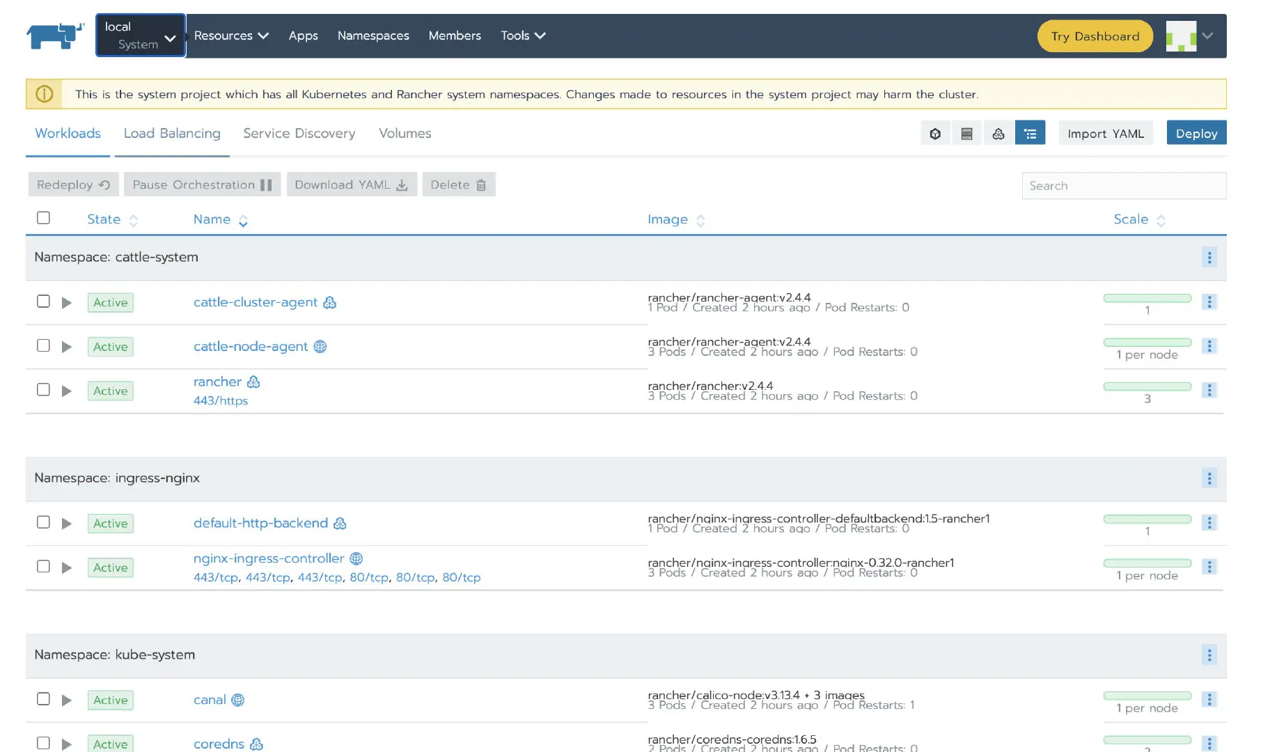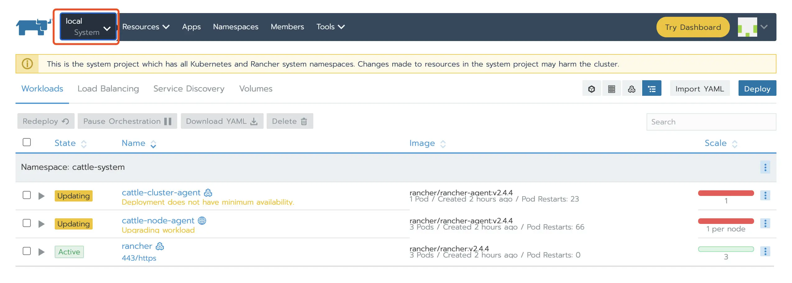 cattle-system cattle-cluster-agent-68898b5c4d-tm6db 1/1 Running 3 3m14s