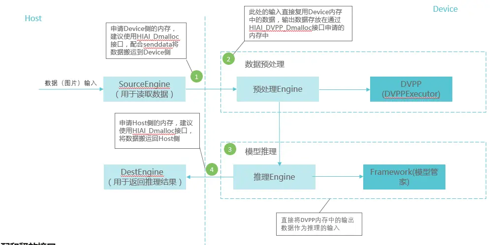 HIAI_DMalloc/HIAI_DFree接口主要用于申请内存,再配合SendData接口从Host侧搬运数据到Device侧;