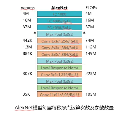 说起AI业务,就不得不提最经典的AlexNet,AlexNet模型于2012年提出,其被认为是计算机视觉领域最有影响力的模型之一。AlexNet网络主要包含八层,前五层是卷积层,最后三层是全连接层。 配合pooling及norm运算,以下列出所有卷积层和全连接层的参数规模以及每层的浮点计算量,从图中可以看出AlexNet网络的参数规模达到了6千万量级,计算量达到720MFlops。通过在横向比较几个经典的分类网络,参数规模以及计算量都是巨大的。那么从计算量的角度来看计算中99%以上都是卷积运算,本质都是矩阵运算。