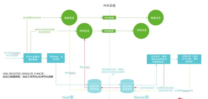 通过DMA(Direct Memory Access)映射将控制信息拷贝一份存放到对端的内存中,并保持本端与对端之间控制信息的映射关系。 指向数据信息的内存(dataBuf)指针已通过SendData接口的入参传入,dataBuf是由用户调用HIAI_DMalloc/HIAI_DVPP_DMalloc接口申请的,申请该内存后系统将本端的数据信息通过DMA映射拷贝一份存放到对端的内存中,并保持本端与对端之间数据信息的映射关系。