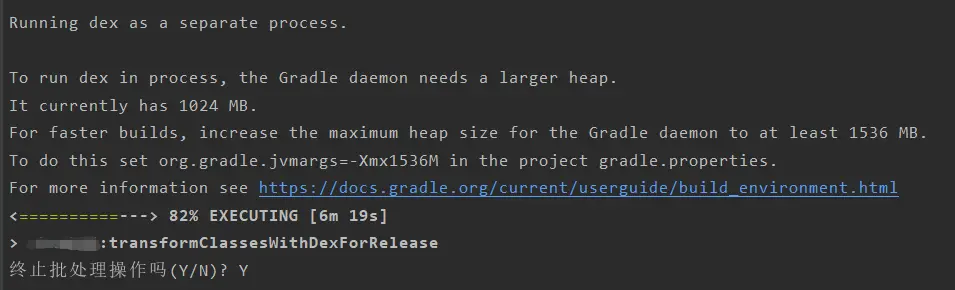 由于gradle编译时的内存资源不足,需要配置更大的内存资源。
