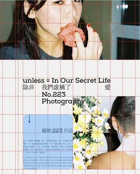 先选择一个契合的背景色,再沿着版心画出九宫格,然后将图片素材置入到版面中,按照九宫格的四个交点来放置。确定好主体的位置后,就可以开始编排文字了