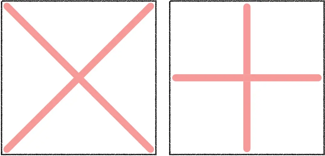 通过这两幅作品的对比我们可以看出,「X」形交叉由于斜线的存在,动感更强,而「十」字形交叉给人的感觉会更加稳重一些。所以在选择上,我们可以根据自己想要呈现的感觉来判断。