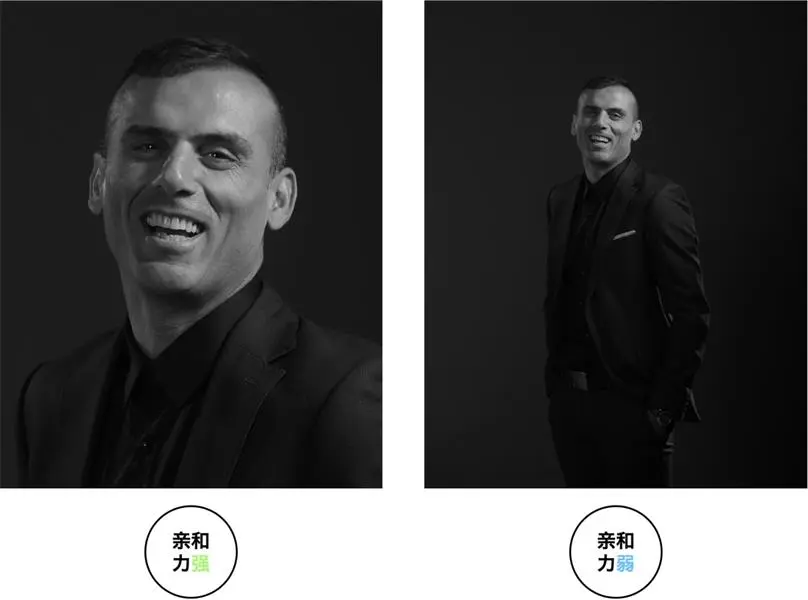 这个距离感用照片来解释的话就像这样,同一个人在使用半身照与全身照时,给人的感觉是不一样的。因为照片中的人会给你带来不同的距离感受,如半身照给人的感觉就是,这个人离你很近再加上他的笑容,你自然会感受到那份亲和力,而全身照相对的会严肃一些。