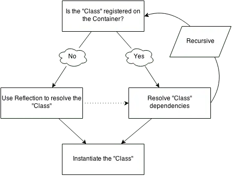 类,容器将会抛出 BindingResolutionException ,尝试从绑定解析类之后,返回到反射方法并解析所有依赖项。