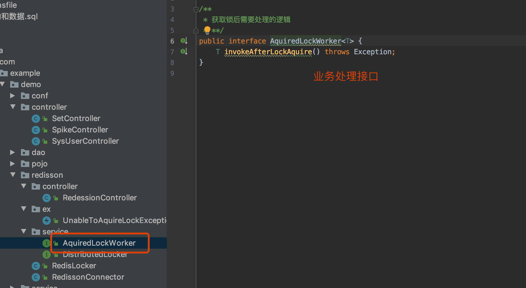 具体的业务逻辑实现都需要实现该接口