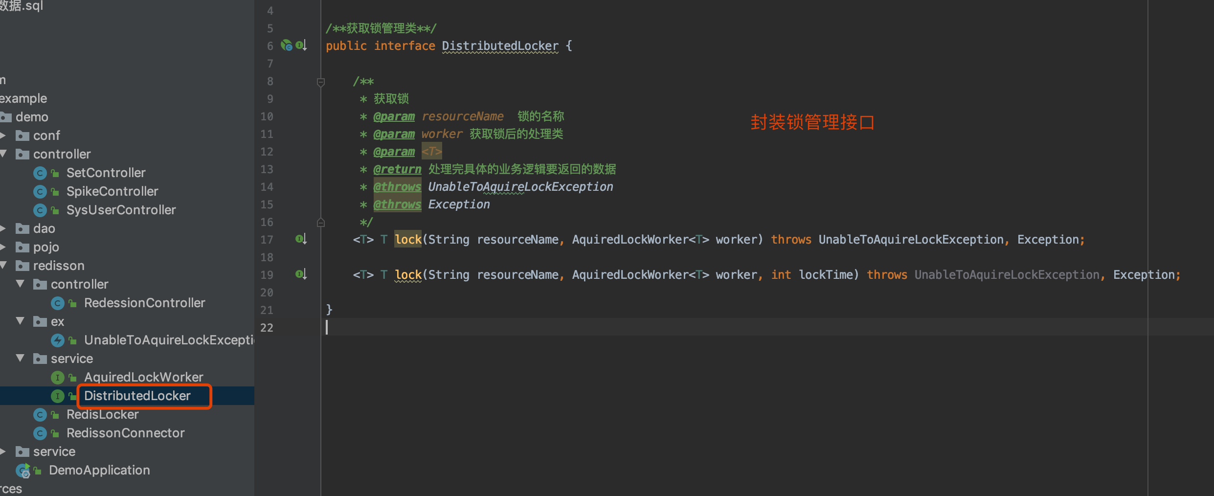 封装锁管理接口