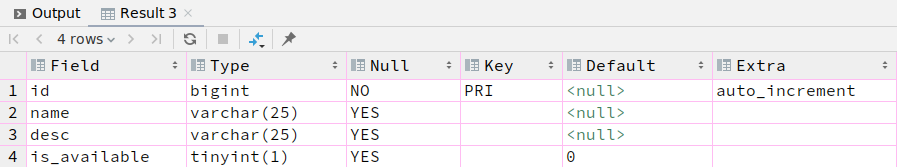 `is_available` tinyint(1) DEFAULT '0',