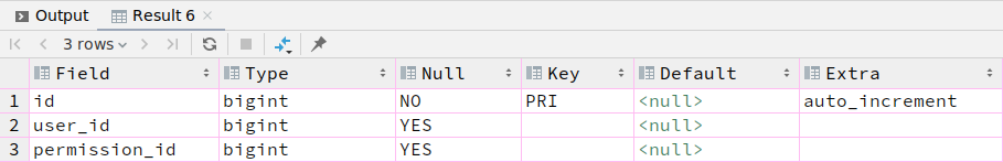`permission_id` bigint DEFAULT NULL,