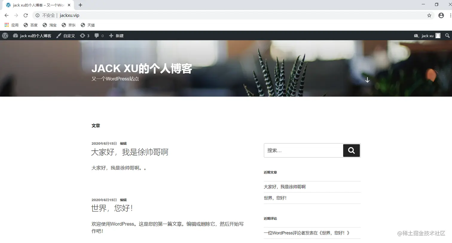 配置好以后,别人就能通过你的域名 www.jackxu.vip/ 访问啦!